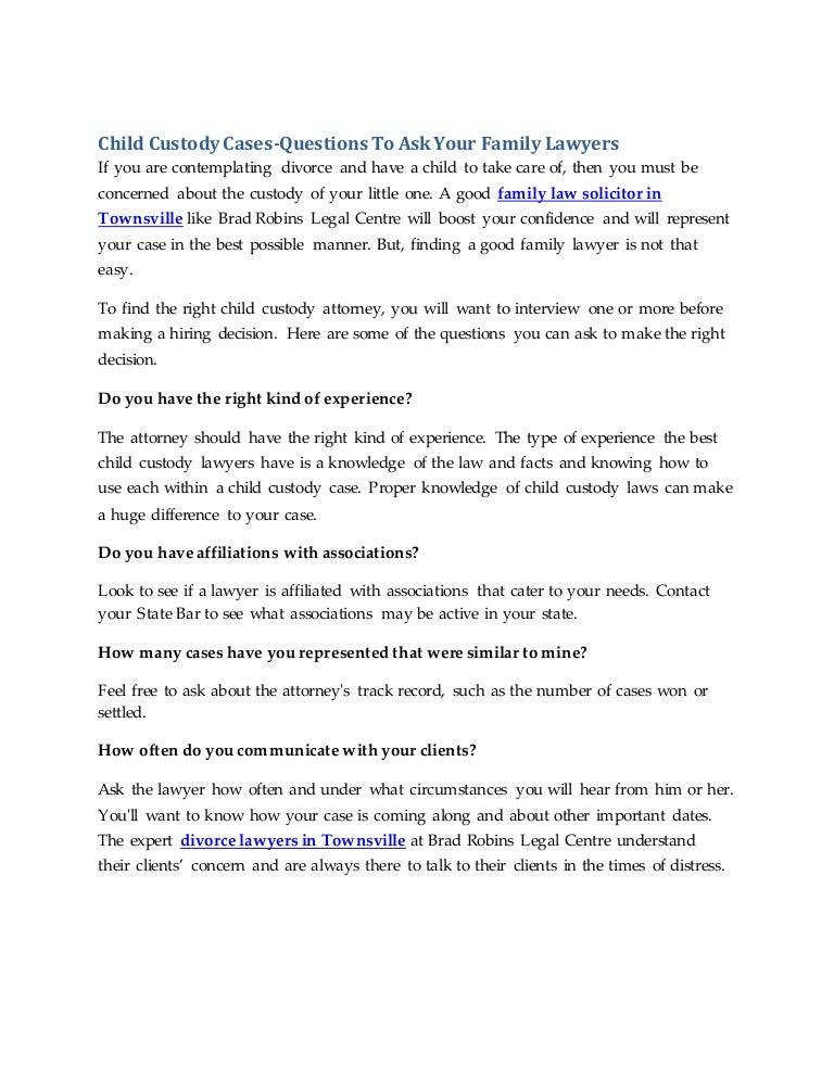 Child Custody Cases Questions To Ask Your Family Lawyers