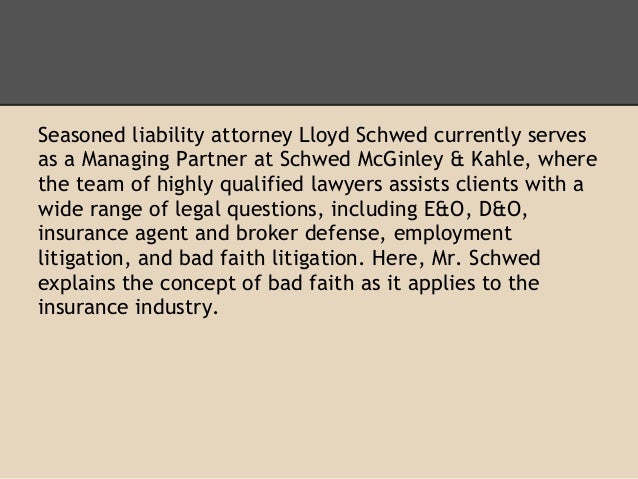 Your insurance bad faith attorney must understand the law as it applies to an insurance provider. Insurance bad faith is a legal term of art unique to the law of the united states but with parallels elsewhere particularly canada that describes a tort claim that an insured person may have against an insurance company for its bad acts. Generally every insurance policy has an implied obligation of good faith and fair dealing that neither the insurance company nor the insured. California insurance bad faith claims.