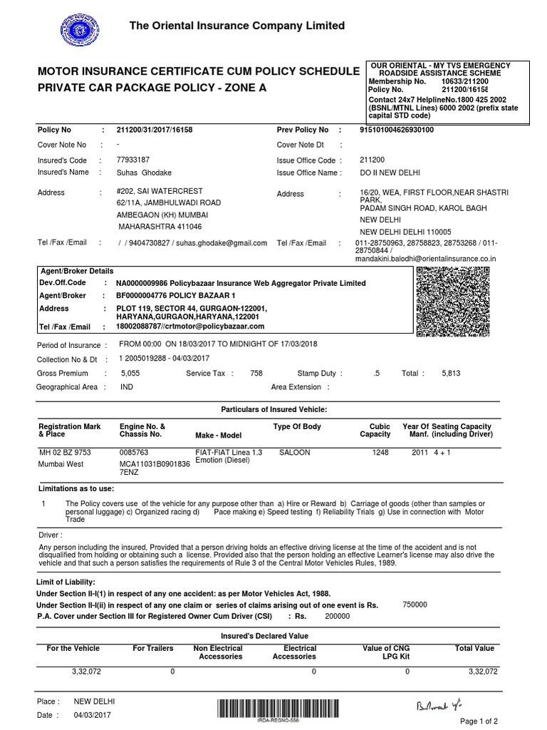 Pdf Bharti Axa Smart Drive Private Car Insurance Policy Pdf Download Instapdf