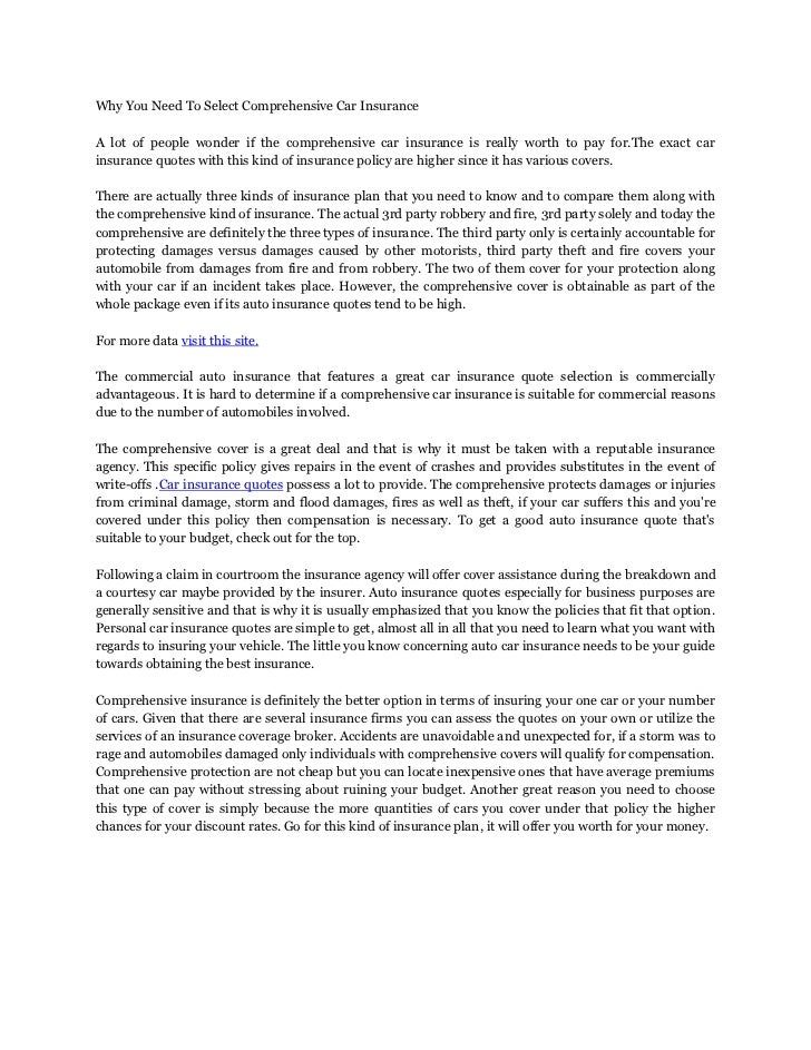 Why You Need To Select Comprehensive Car Insurance
