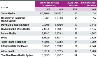 Pressreader Modern Healthcare 2016 06 20 10 Largest Healthcare Systems By Revenue
