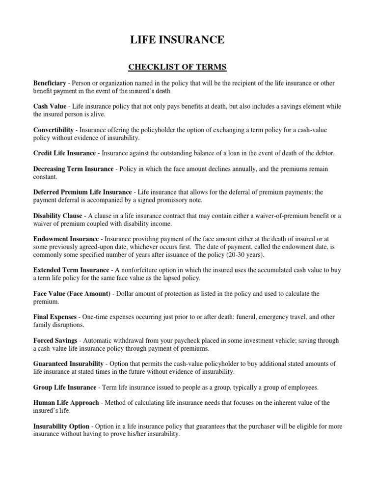Lifeinsuranceterms 3 Life Insurance Financial Risk Free 30 Day Trial Scribd