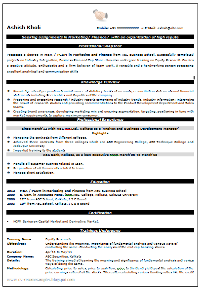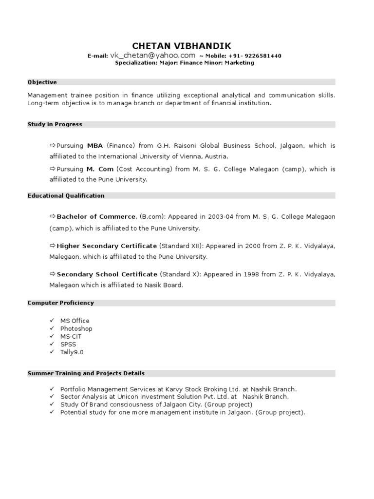 New Resume Format For Mba Student By Chetan Vibhandik Economies Business