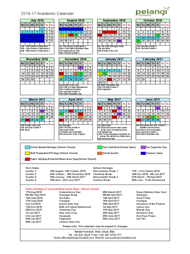 2016 17 Academic Calendar July 2016 August 2016 September 2016 October 2016 Academic Term Holidays